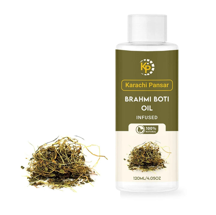 Karachi Pansar’s Brahmi Booti Oil is a versatile herbal oil crafted for enhancing mental focus and hair vitality. Known for its cooling and rejuvenating properties, Brahmi Booti Oil works wonders on the mind, helping to reduce stress, anxiety, and mental fatigue. When massaged into the scalp, it strengthens hair follicles, promoting thicker, shinier, and healthier hair growth. This oil also soothes a dry scalp, reducing dandruff and irritation. Rich in antioxidants, Brahmi Booti Oil nourishes both the hair and the scalp deeply, promoting blood circulation and hair thickness. For those dealing with hair fall and weak roots, this oil provides vital nutrients to revitalize hair from the roots up. Furthermore, its calming effects make it ideal for individuals with sleep issues or those seeking to enhance focus and memory. Pure and free from synthetic chemicals, Karachi Pansar’s Brahmi Booti Oil offers a holistic approach to both hair and mental wellness. Its natural aroma brings a sense of calm, making it a preferred choice for meditation and relaxation routines. An essential addition to your wellness regimen, this oil offers benefits that go beyond hair care, impacting overall mental and physical well-being. Perfect for all ages and hair types.