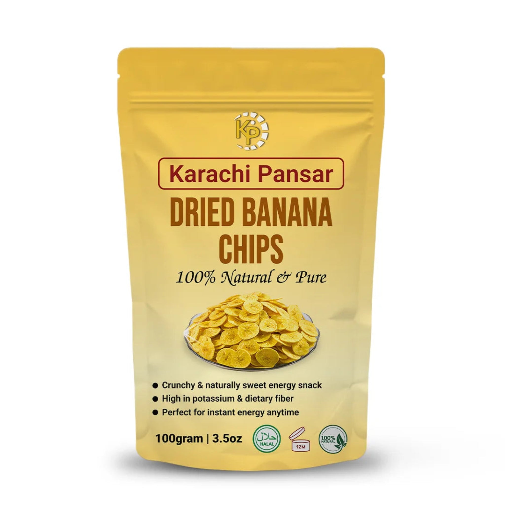 Karachi Pansar Dried Banana Chips are made from carefully selected ripe bananas, sliced and naturally dried to retain their sweet taste, crunch, and nutrients. These banana chips are a delicious and wholesome snack that supports energy, digestion, and overall wellness.